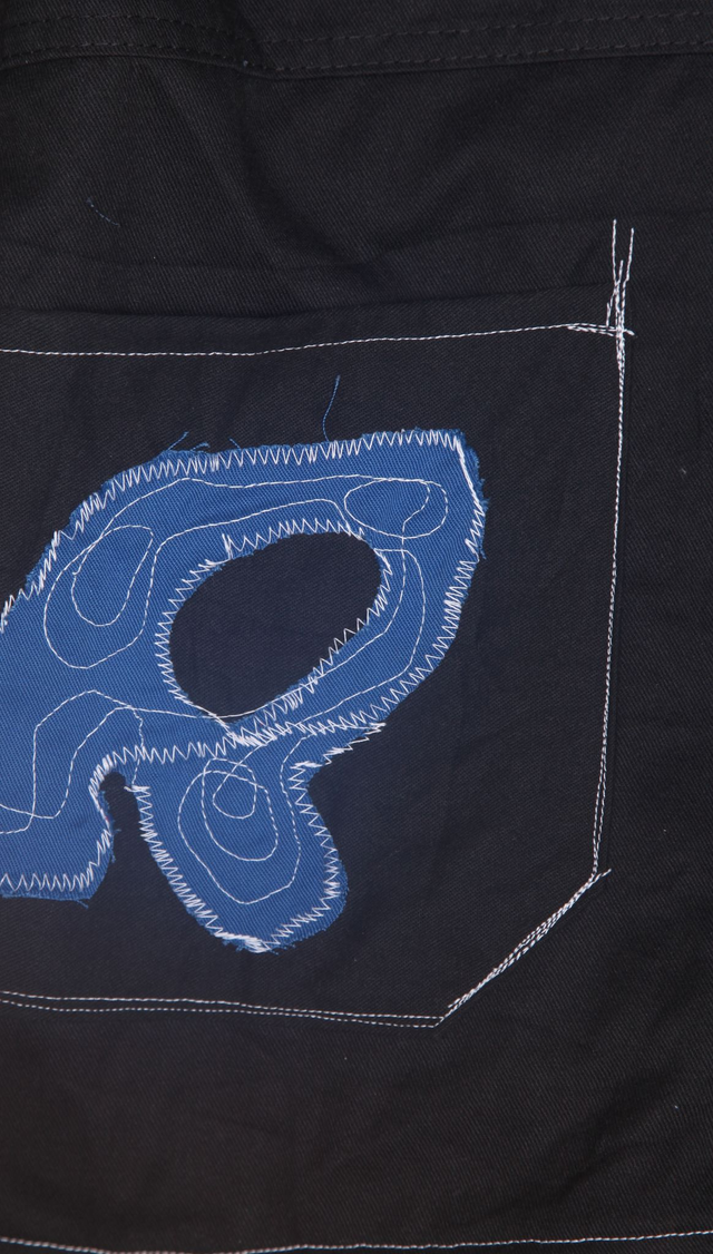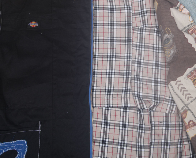 1of1 Zip up boxy work designer jacket created as a collaboration between textile artist Amber Lily and second hand clothes designer Trouser Project.